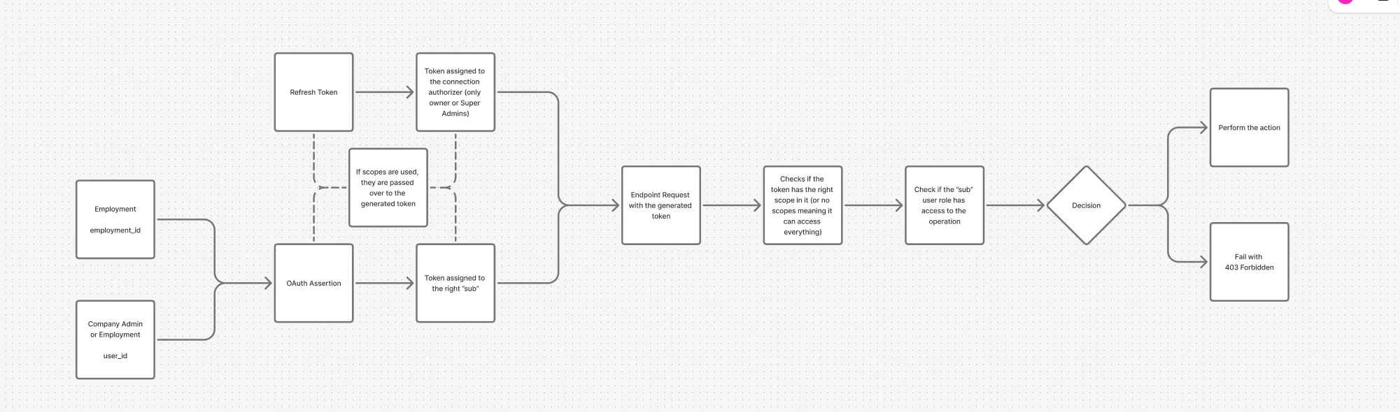 scope | Partners can define specific scopes for the token they are generating. This is done by specifying which permissions should be granted to the token, as shown in the example below: scope = "offboarding:write timeoff:read employment:read" If no scope is specified, the token will be granted all available scopes by default. However, we strongly encourage you to implement specific scopes as soon as possible, as this default behavior will be deprecated. |